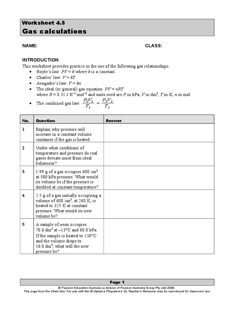 Gas Laws Chemistry Worksheet / Gas Laws Worksheet With Answers Chemistry Gas Laws Worksheet Boyles Law Charles Law For A Given Mass Of Gas At Constant Temperature The Volume Of A Course Hero :. Yet, anyone who has spent any time shopping for one understands that not all heaters are created equally. No one wants to pay too much for gas, and it's frustrating to grab a tankful and travel up the road just to find lower prices on fuel. Paul taylor/getty images the combined gas law combines the three gas laws: You made it to the end of the quiz, but it looks like you could use more practice wi. Navigating the world of chemistry is much easier once you've got an understanding of the field's basic laws.